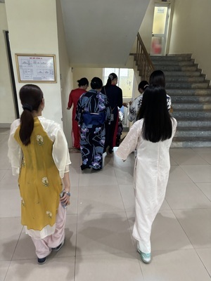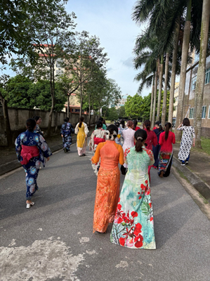 本活動では、ベトナムのナムディン看護大学を訪問し、現地の学生と交流を行った。交流では、学生生活や看護、栄養をはじめとする医療について学ぶ機会を得た。現地の学生は明るく学ぶ意欲にあふれており、文化や言葉の壁を越えて交流を行うことができた。また、東洋医療の伝統病院を見学した際には地域に根ざした医療の形を学んだ。糖尿病患者への対応食や経管栄養の体制がある一方で、アセスメントや個別対応は発展途上にあり、日本との違いを通して栄養管理の重要性を再認識した。ベトナムと日本の医療や食形態は地域に合わせた部分があり、単純比較できるものではないが現地の努力や工夫から多くの学びを得た。さらに、小学校を訪問し、児童に好きな食べ物や給食を尋ねたり、ねぶた祭を紹介したりする中で、食や文化を通して国や言葉を越えて人がつながることを実感した。この経験を今後、管理栄養士として多角的な視点を持ち、状況に応じた栄養指導に生かしていきたい。 |