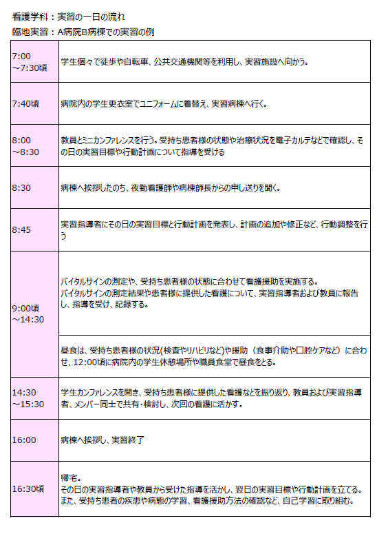看護学科 実習の一日の流れ