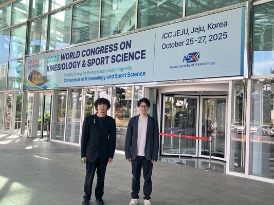 このたび,韓国・済州市で開催された 2025 World Congress on Kinesiology & Sport Science(2025 WCKSS) に参加し,大変貴重な学会発表および国際的な交流の機会を得ることができました.当研究室(認知運動神経科学)に所属する大学院生とともに参加し,姿勢制御中の神経活動に関する研究成果についてポスター発表を行いました.発表では,視覚情報を用いて姿勢を保つ際の脳と筋の協調的な働きを電気生理学的手法で解析した結果を紹介し,多くの研究者から質問や助言を受けました.特に,中国,韓国,インドなどアジア各国の研究者と深いディスカッションを行い,実験手法やデータ解釈の視点など,今後の研究発展につながる有益な意見を得ることができました.学会は国際色豊かで,若手からベテラン研究者まで活発に議論が交わされており,研究に対する熱意や多様な視点に強く刺激を受けました. |