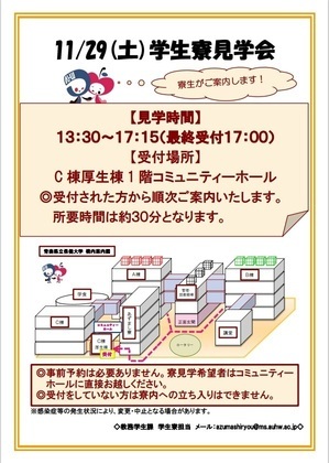 ・令和7年11月19日 学生寮見学会について、11月29日開催の見学会のちらしを掲載しました。